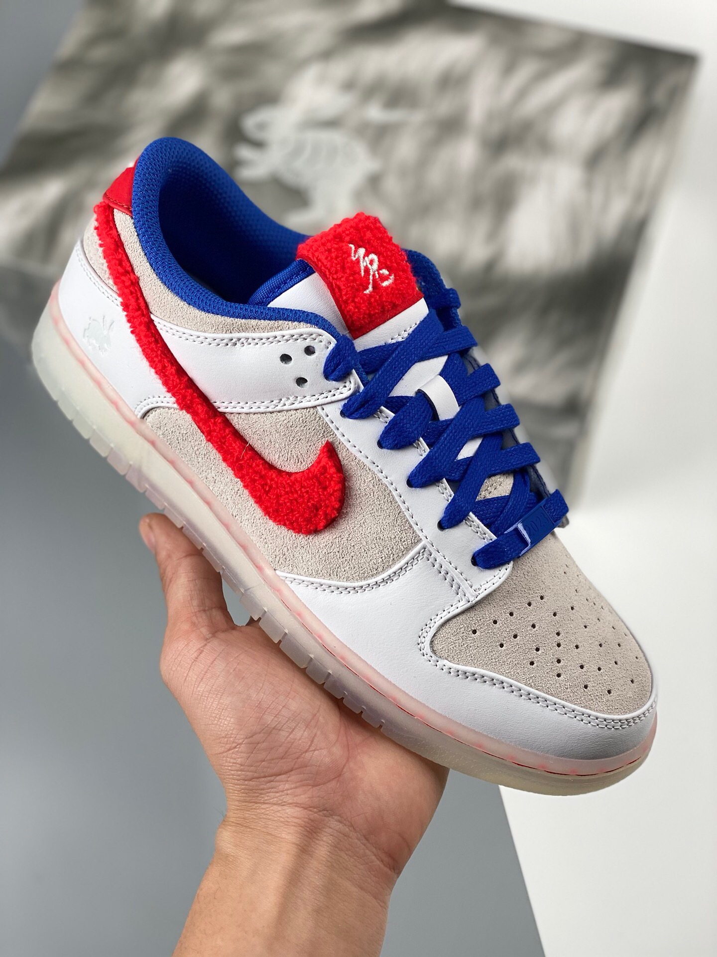 G version nk dunk sb low rabbit year white, red, blue, and white rabbits are produced by the original factory. The first batch of original head layer materials is produced by the original factory. Exclusive version distillation processing brings better visual and foot feeling experience. The factory's pure original quality shipment is clean, and the leather is cut clean without any burrs. Perfect product number: fb7160-161