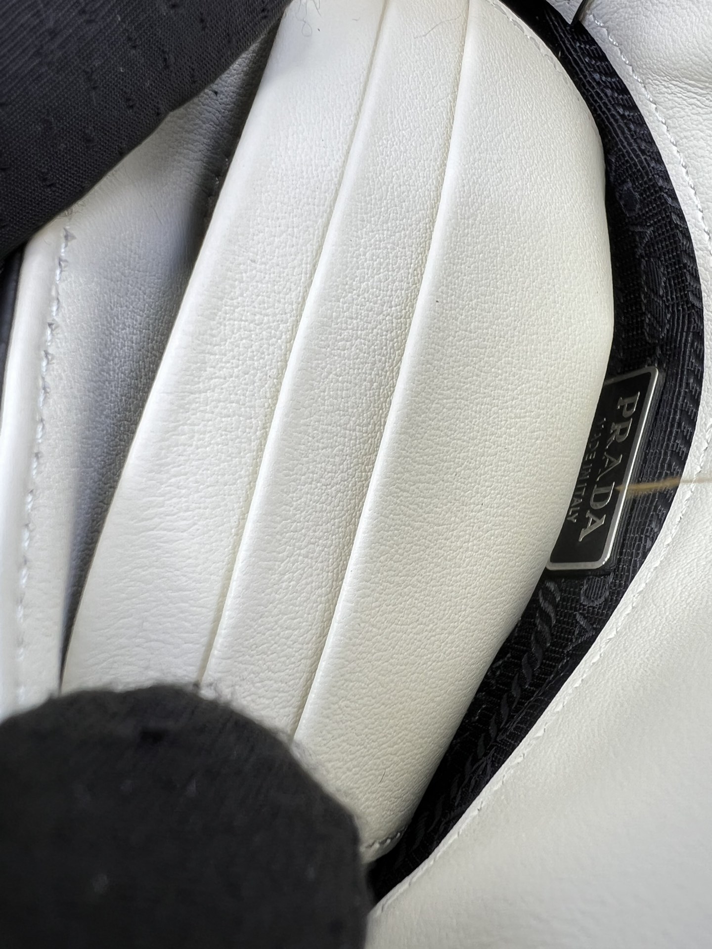 New Prada The unique sloping structure on the side showcases a simple curve, giving it a lightweight and soft styling style. The shoulder straps can be extended and adjustable, making it super versatile and stylish. It is a must-have for trendy people! The lines are smooth and neat, with almost zero self weight! Retro and trendy! Size: 17 * 14.5 * 7cm