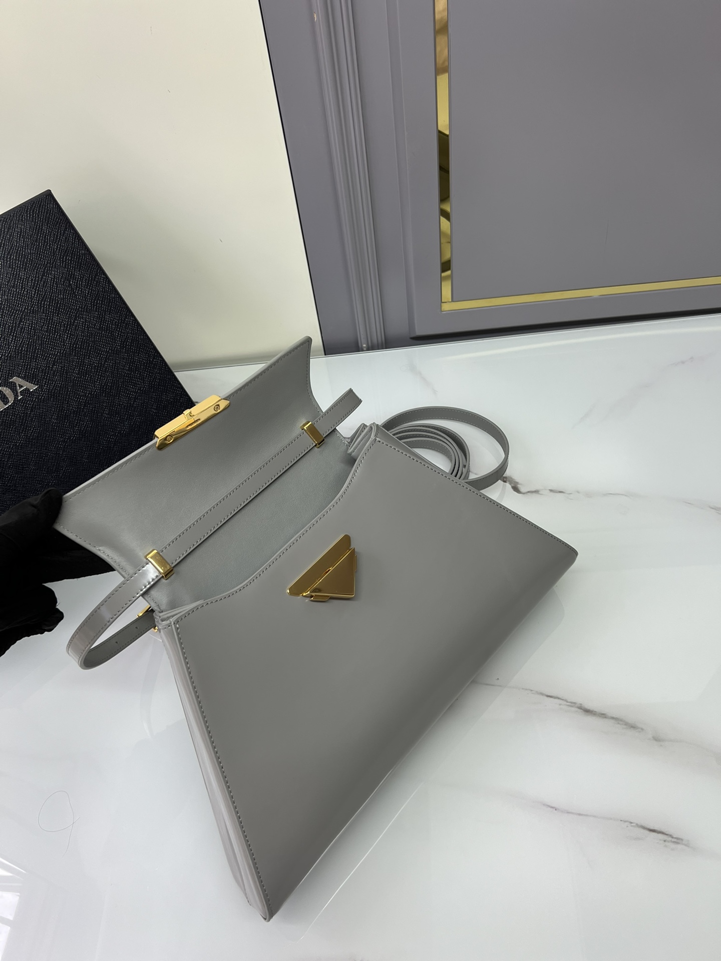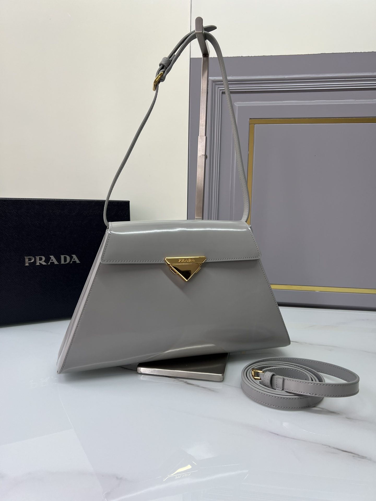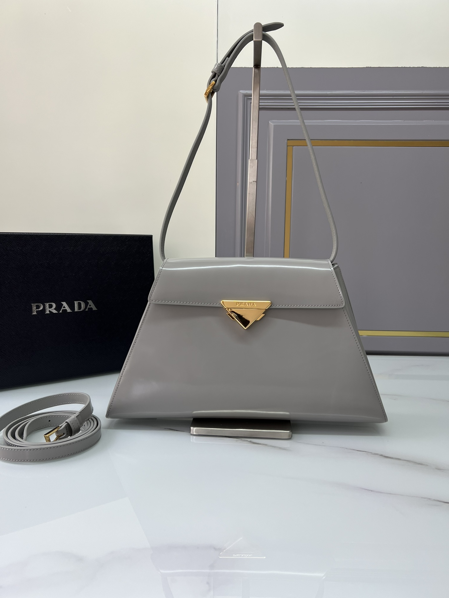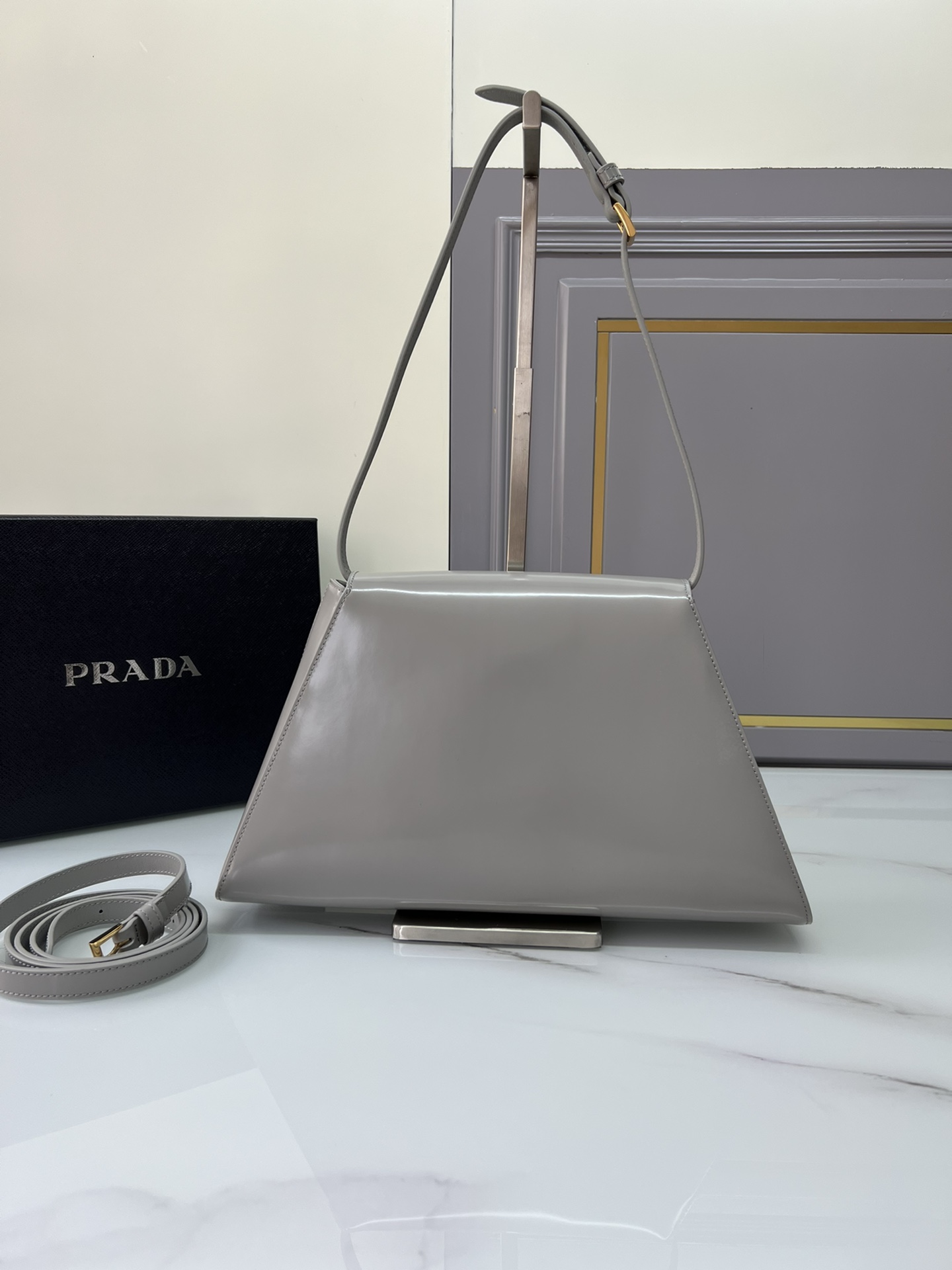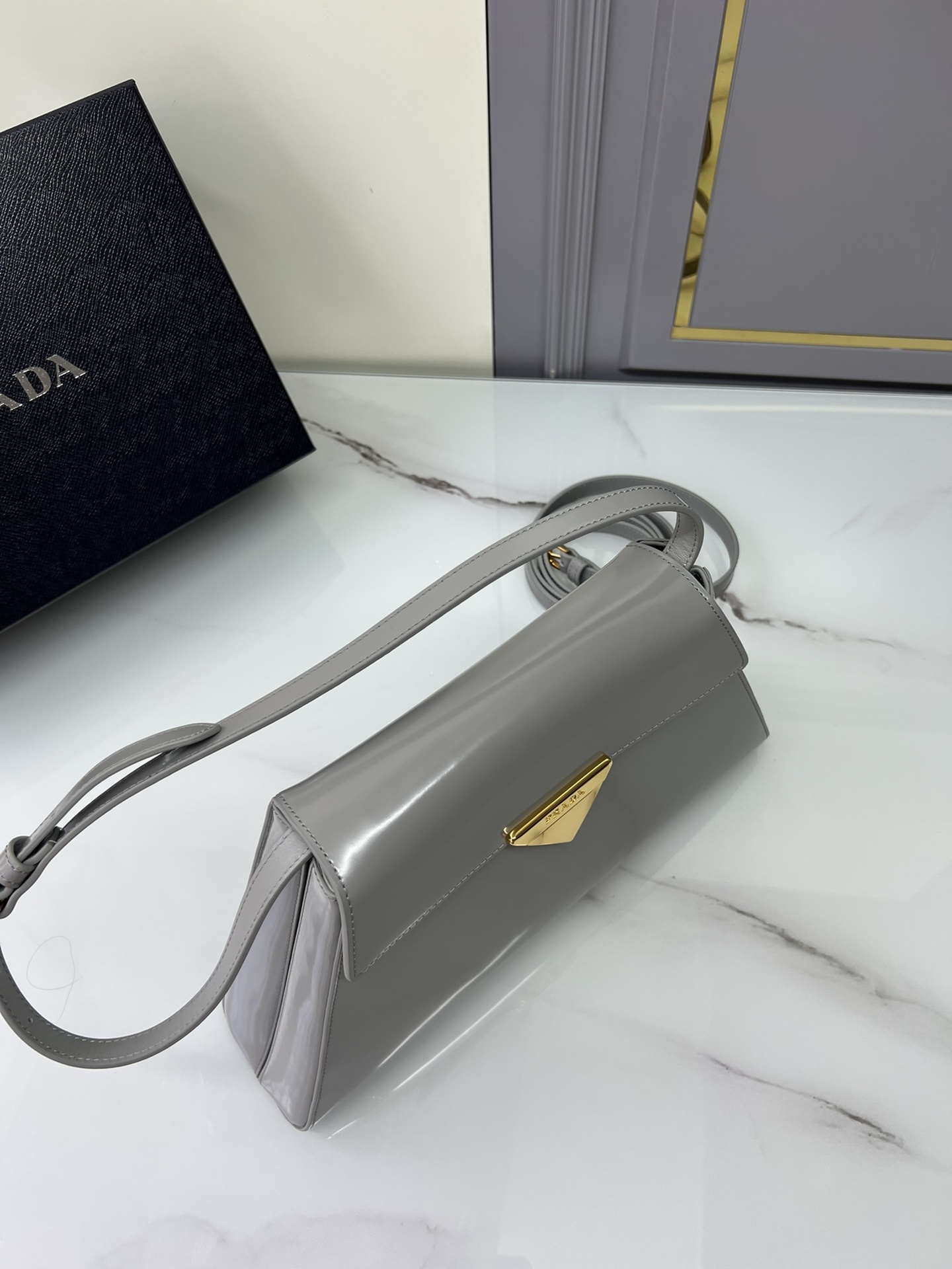 New Prada 🎉 Runway style 🎉 1bd342 New 🎉🎉 This runway style features imported glossy calf leather, paired with sheepskin. The trapezoidal design is full of artistic sense, equipped with two detachable shoulder straps of long and short length, and the front panel is equipped with engraved micro label lock head flip design, which can be exchanged and paired for different occasions and clothing. Large capacity space. For upper body effect bars, if you like babies, hurry up and get started 🎉🎉 Length 34x Height 19x Bottom 8cm
