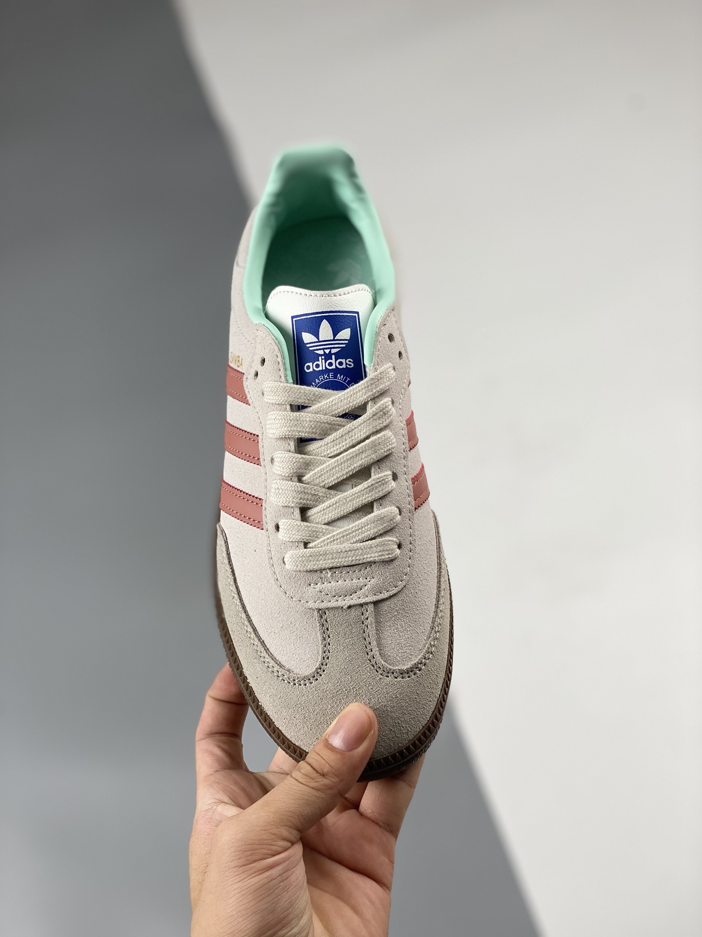 Adidas samba og Three Leaf Grass Ash Powder Tiffany's Cost Performance Ratio Ceiling First Trial Edition Samba Anniversary Series Differentiation Market Fake Leather Currency Adidas Classic samba og Made in the Last 70 Years, Original Full Layer Production ♨ Super soft top layer leather eliminates inferior imitation leather ‼ The slender shoe last, slightly pointed toe, and suede toe stitching are all elements that we can see, which are the soul of Samba's design. Product number: id2047