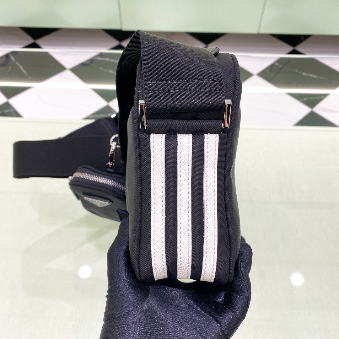 New Prada ✨ Imported parachute nylon fabric with classic three bar cowhide accessories on the side ➕ Triangle back clover ➕ Recycled nylon logo, polished steel hardware, nylon lining, single layer adjustable nylon waistband with buckle and zipper closure, the latest must-have collection for men size: 25-19-7cm