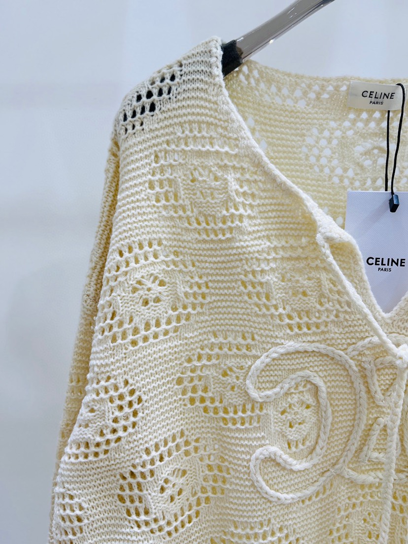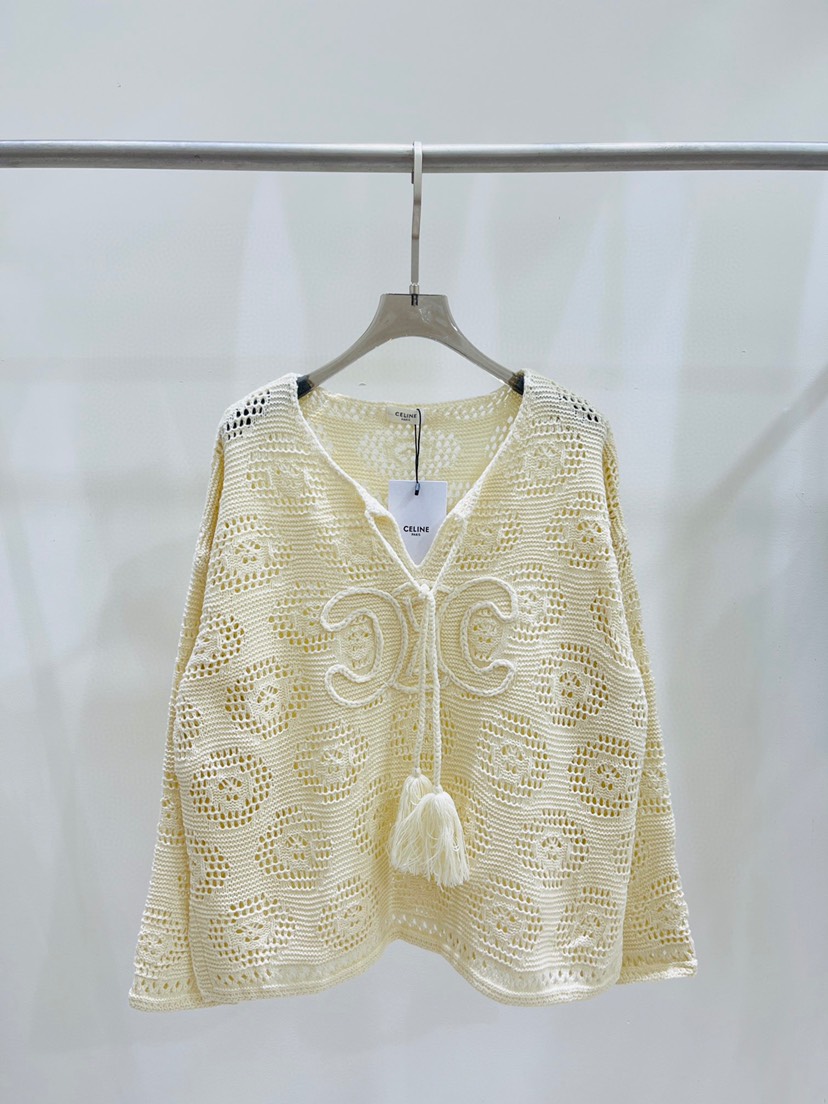New Celine Early Autumn New V-Neck Triumphal Hollow Tassel Knit Top