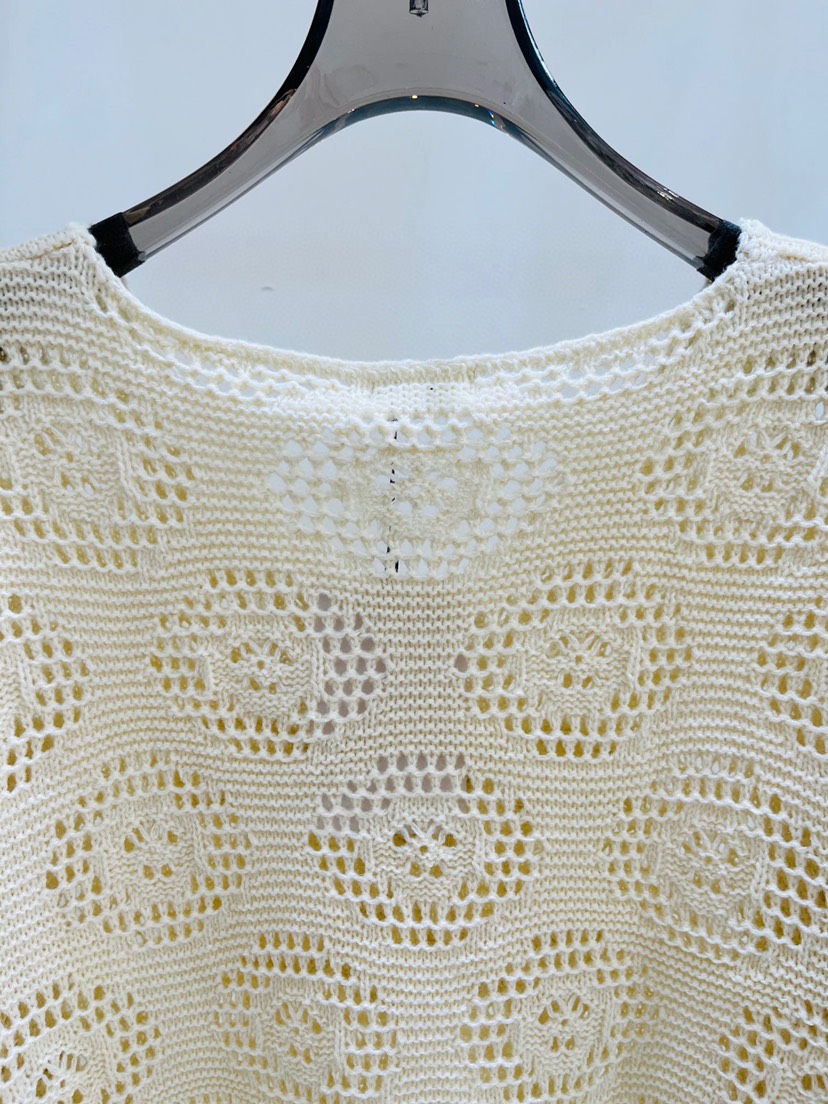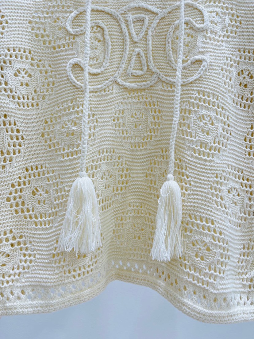 DetailExclusive Launch ❤️ Celine's early autumn new V-neck Triumphal Arch hollowed out tassel knit top with fisherman mesh solid color wool ball drawstring design, can be used as sun protection and air conditioning shirt. Knitted long style, a must-have item for fashionable and spicy girls, 100% wool 🦙