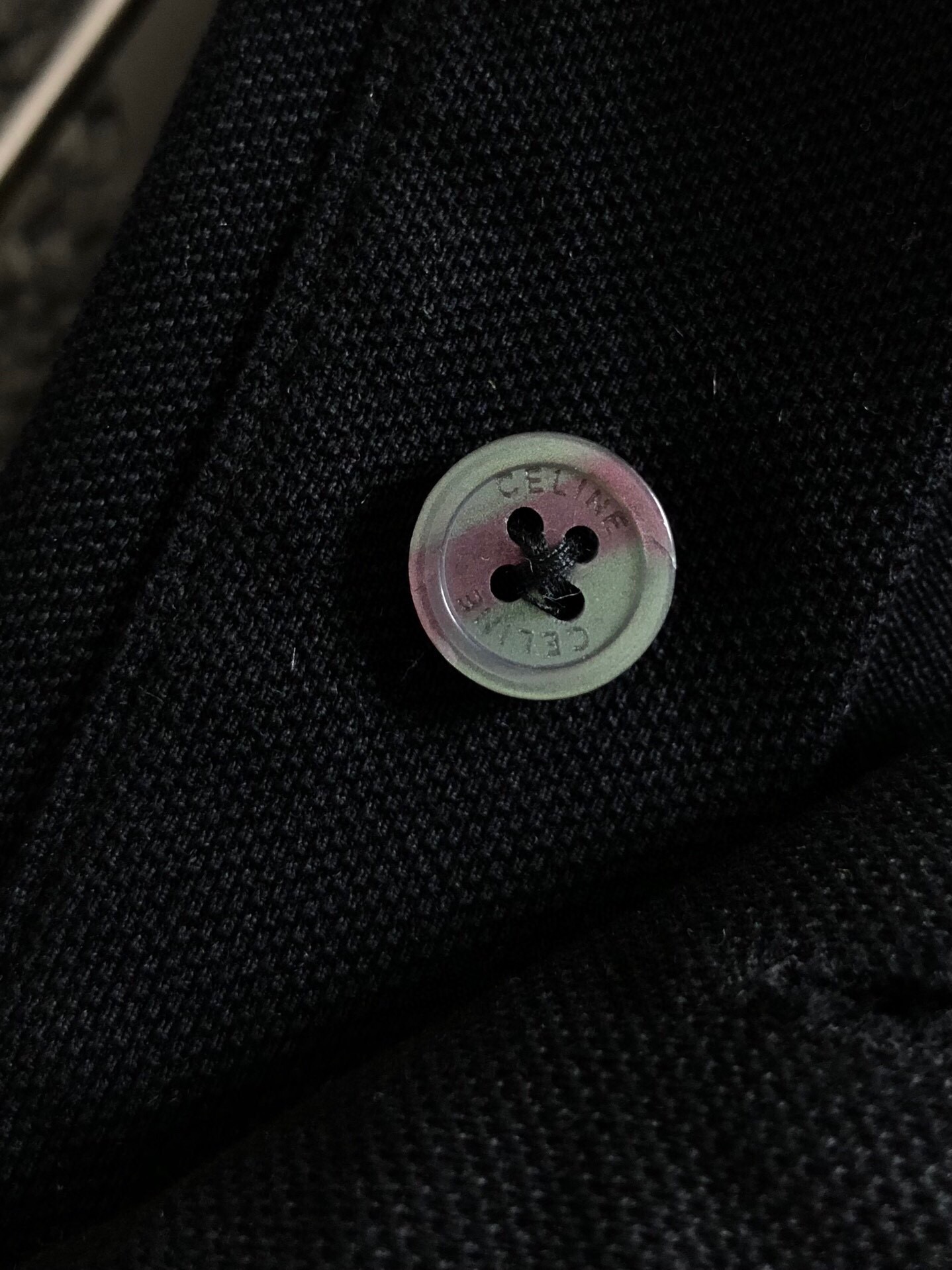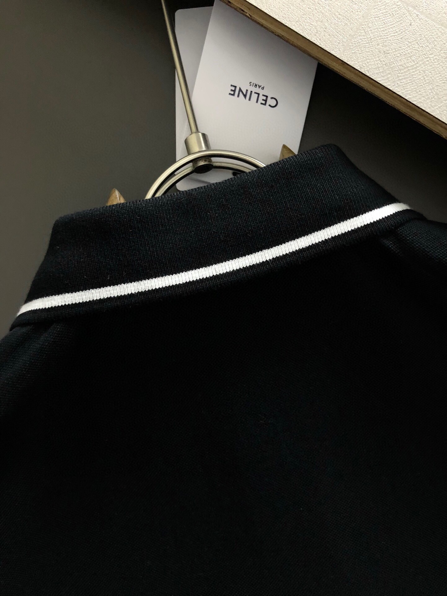 New Celine Top grade black three-dimensional thorn simple embroidered polo lapel short sleeve