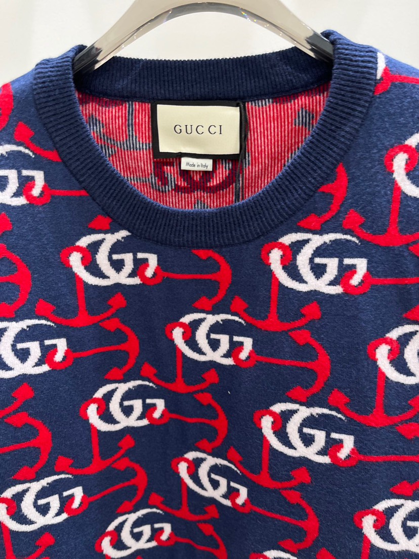 • New Gucci Round Neck Contrast Double G Jacquard Knit Long Sleeve