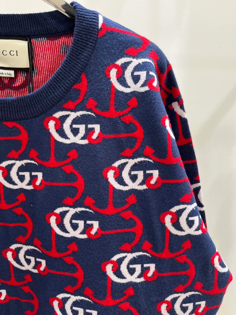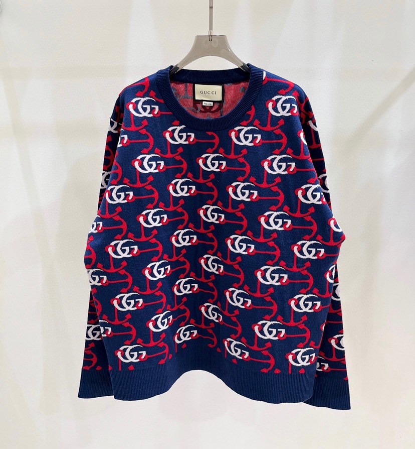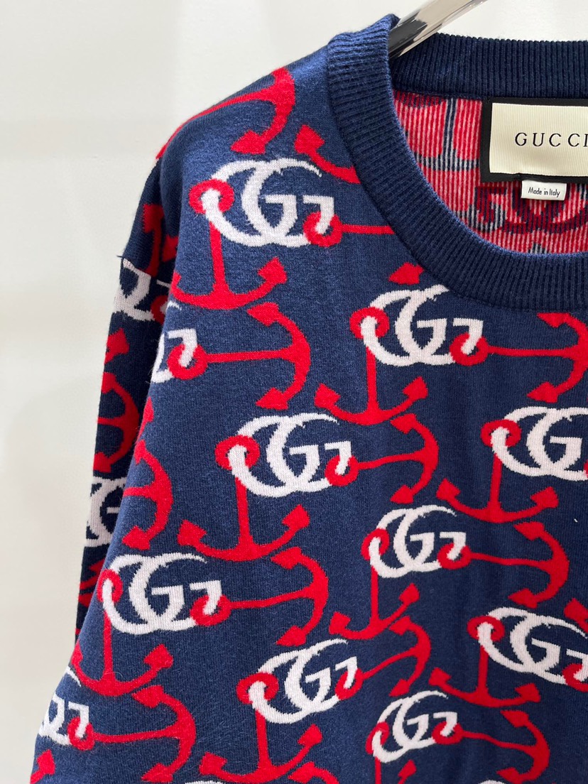 Home / Gucci / New Gucci Round Neck Contrast Double G Jacquard Knit Long Sleeve